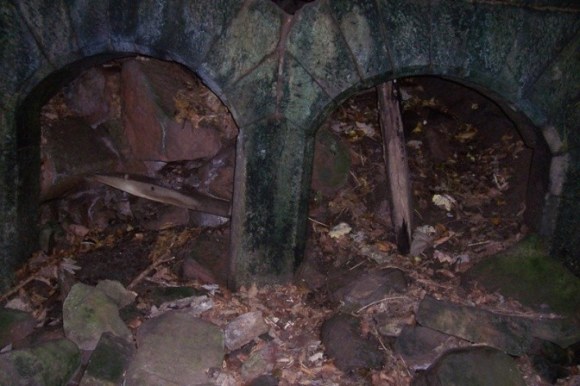 The reddened earth at the kiln head and the vitrified stone interiors of the pots show that they were extensively used during their comparatively short working lives. Financial difficulties connected with the estate and the reduced demand for lime seen to have shortened their use. In their heyday they would have been highly conspicuous at night. The limekilns at Muiravonside are unusually ornate, to suit their setting on the edge of a gentleman’s estate. The central chamber is a common feature of draw kilns and was here treated with a finely dressed stone arch. Additional arches on either side of this created a semicircular forecourt. By this arrangement the side arches buttressed the central block and produce a pleasing view. These secondary arches had blank end walls, now sadly tumbled, and could have been used for storage. Had expansion of the enterprise been considered they could have been adapted as chambers to new pots. On either side of these arches is a circular room containing a fireplace and window, and having a door opening away from the kilns. These are well constructed of large slabs of masonry, contemporary with the kilns themselves. In the walls of these rooms, at a height of 2m above the ground-floor level, can be seen the holes for timber joists for an upper storey.