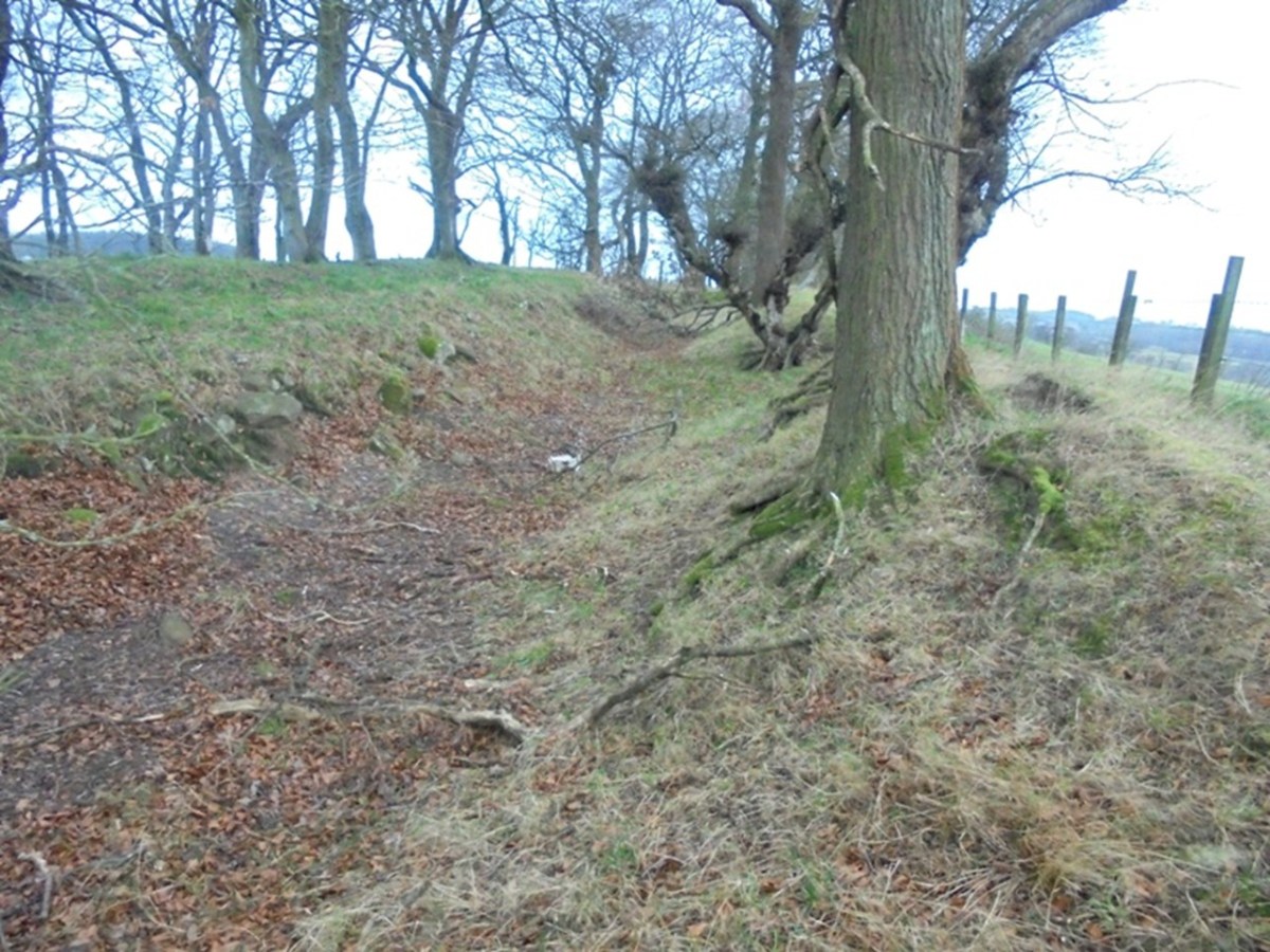 The extensive presence of earthworks of rig and furrow to the east of the drove road shows that that area had been developed for arable cultivation in the 17th century (SMR 2346). To the west the land was once part of Muiravonside Muir. It is not surprising therefore that the broad drove road to the south of the Manuel Burn was confined by a stone dyke on its east side intended to keep the animals away from these fields and their crops, whereas it had a more slender earth dyke on its west side.