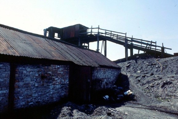 “Small privately-owned coal mine, which was too small to be included in the nationalisation of the coal mining industry. In the past up to 18 men worked in this pit, which began working in 1936. The first shaft sunk on this site is now used only as an air shaft, another shaft having been sunk in or around 1963(?). At the moment only three men are employed in the mine, which produces 7 or 8 tons per week now. The mine is gas-free, enabling the use of carbide lamps. It is apparently the only fully gas-free mine in Scotland. The coal seam, which is 14 inches thick, is worked by the long-wall method, and is undercoat to 4 feet. All the coal from this mine is sold for domestic use. The only coal-cutting machinery here is an ‘AB’ (after Anderson Boys of Motherwell, manufacturers) cutter. This uses a moving link-chain set around a flat blade and equipped with moveable steel teeth or ‘picks’. This is attached to a drive unit. The coal is cut away at the bottom of the seam and the whole level fall out. The mine and depot above ground are not connected to the National Grid, therefore the mine has to supply its own power. One of the mine buildings houses a generator. The mineshafts (only one in physical use) descend at an angle of 35-40 degrees into the ground. The mine is currently worked by three brothers – Whyte – who carry on a more or less completely self contained business operation from mining the coal to carrying out the house-to-house deliveries, which account for the mine’s total sales.