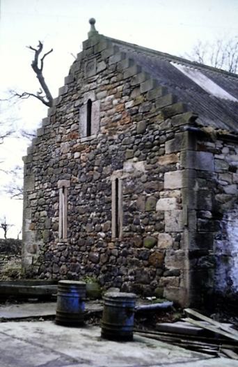 - “Pirnie Lodge. This house was built by the Rev. William Hastie, sometime minister of Slamannan, whose initials, with those of his wife, Isabella Shaw, and the date, 1735, appear on the lintel of the front door (Pl. 174c). The house measures 29 ft. by 19 ft. externally, and the facade shows one window on either side of the central doorway, with two others on the first floor placed symmetrically above them. The jambs of the doorway bear roll-and-hollow mouldings returned at the top; the inscription on the lintel is in bold and raised letters on sunk panels and reads MR / WH IS 1735. The front windows have all been enlarged, but a small original window, with rounded arrises, which lights the stair can be seen in the centre of the back wall together with a smaller one, of irregular shape, at ground floor level. In the NE gable a window on the first floor has been built up, but a small one remains to light the roof space above. the gables are crow-stepped, and the existing slate roof replaces an original roof of thatch. Internally there is room to the right of the entrance, a stair in the centre of the house, and a hall and pantry to the left. On the first floor there are two rooms. 870728 NS 87 SE 10th April 1954” [p356].