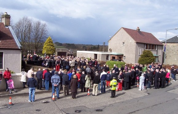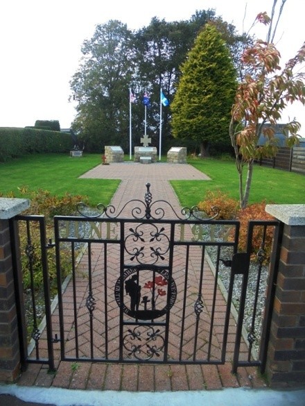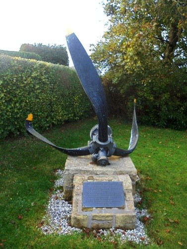 In August 2014 the mangled remains of a propeller from a Spitfire which crashed at Hillhead Farm were placed on display to the left rear of the above plinths. The plaque that goes with it states: