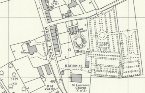 1860OSNBMote A small conical eminence a short distance north of the parish church, having the appearance of having