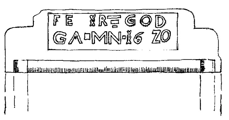 Little remains of this early church. A dormer pediment is built into the south face of the present church, along with a window lintel and a sundial.