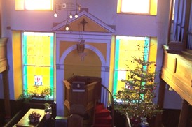 In 2015/16 a major overhaul was undertaken. This included the removal of the raked pews on the ground floor and the installation of toilets and a kitchen below the gallery on the ground floor.