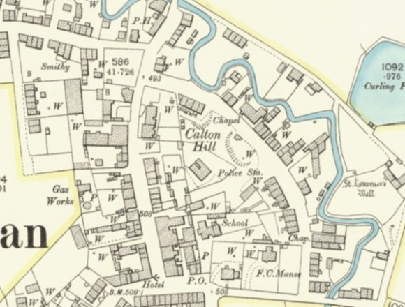 By 1860 Slamannan had all the appearances of a small town. Two churches, two doctors, plenty of shops, and two public houses. It even had a police officer – James Simpson Stewart. A second policeman was sanctioned in 1864. Building of the police station and lock-up at Slamannan was begun in 1877 on Castle Hill (now Calton Hill) and it opened in 1879. It is a stone building with crop-stepped gables and vaulted prison cells and cost £1,004. The architects were A & W Black, Falkirk.