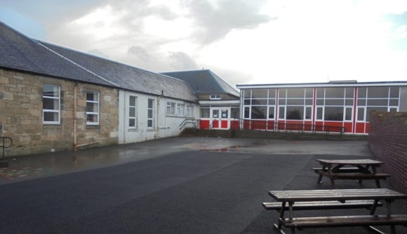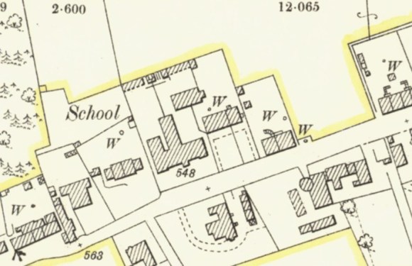 The school opened at the west end of the village on 11 September 1876. It consisted of a principal school room, 64ft long by 26ft broad, which could be converted into two rooms by a folding door. At each end of this room was a class room, 16ft by 18ft, and a retiring room for the teachers, while at the back was an infant class room 24ft square. The whole building, as also schoolmaster’s house, outhouses, walls, and so on, cost around £2,500. As the school was designed to accommodate 350 pupils this represented a rate of £7 7s per scholar. The building was relatively plain, thus keeping costs down, but its substantial character reflected civic pride. The staff at the time of the opening consisted of Mr Horne (head teacher), Miss Hutchison (female teacher), an assistant, and three pupil teachers.
