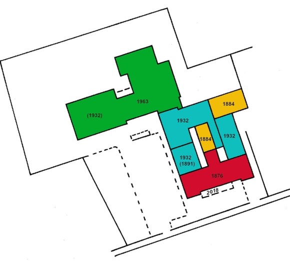 A disastrous fire in the mid-1960s destroyed the new western block. It was replaced by a two-storey steel-framed building which was joined to the north-west corner of the old block. This point of junction is now the main entrance of the school.