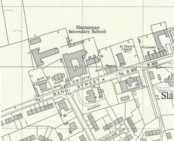 “By 1849 it was decided that a new school be built on the lands of Castlehill belonging to Mr. Andrew Rankin. Mr. Rankin was to take over the old school building at valuation. The cost of the new school was not to exceed £260 plus the price of the old building. The site chosen was the one that was later occupied by the Free Schools, later called Rosemount School. At a meeting of the Heritors on 29th September, 1849, it was decided to move to a new site but to keep the existing building as the schoolmaster’s house and as offices, and feu from Mr. Rankin the piece of land immediately to the south of it and erect a school there. Mr. Rankin agreed to a new Feu Disposition to include both the old and the new feus. This was approved by the Heritors who appointed Messrs. George Waddell, Balquhatston, John Waugh, North Arnloss, and William Russell, Easter Greenhill as trustees to see that the work was carried out. The new school was built and the old building renovated. That school building was still in use when the newly appointed Slamannan School Board became responsible for education in the parish in March, 1873, as the result of the Education (Scotland) Act, 1872. The schoolmaster, at the change over from Parish School to Public School under the School Board, was Mr. Robert Horne who continued as schoolmaster till he retired in 1903. List of headmasters… As already mentioned the Education (Scotland) Act was passed in 1872 and by that Act school boards were set up in every parish or burgh. The number varied from 5 to 15. The Slamannan Board was to have seven members. At a meeting held on the 7th March, 1873, the first Slamannan School Board was appointed. Twelve names had been put forward but before the time for voting there were only seven names, the number allowed by this Act. No election was therefore necessary. The seven members of the first Board were… The new School Board was enthusiastic and took its work seriously. Soon after the election it called on Mr. Watt, architect, to submit plans for an extension to the school at a probable cost of £600. At a meeting held on 9th October, 1873 the School board considered the question of whether to go on with the extension to the existing school or to build a new one. After a lengthy discussion it was agreed that they should sell both of the buildings that had belonged to the old Parish School and look for a suitable site for the new school for Slamannan. The site chosen was the one where the present school is situated. “The Slate House”, as it had been called, and the school built in 1849 were advertised in the “Falkirk Herald”, and soon afterwards was sold. “The Slate House”, which was the first school and schoolmaster’s house, was for many years the property of the McAlpines, but it has now been demolished. It was an 18th century building similar to the restored 18th century houses at Culross. The newer part, built in 1849, was bought by the Orangemen for a hall. For many years before it was demolished it was a workshop. The plan for the new school was made by Mr. Watt, architect. It was to have a principal room which could be converted into two rooms by a folding door. At each end of that principal room there was a classroom and a retiring room for the teachers. At the back were the infant rooms. The school, schoolmaster’s house, outhouses, walls etc. were built at a total cost of £2,500. The school was built to accommodate 150 pupils. It was officially opened on Monday, 11th September, 1876. The headmaster was Mr. Robert Horne. His staff at that time was a lady teacher, an assistant and three pupil teachers. The number of pupils on the Roll was 220. By September of the following year two male teachers were added to the staff. In 1880 additions to the infant rooms were made. Repairs and alterations to the school were carried through in 1912 to bring it up to date. Early in 1928 it was proposed to reconstruct the school. On 13th September, 1932, the reconstructed school was opened. The new part of it, erected on the ground adjoining the playground, consisted of 4 classrooms, a cookery room, a technical room, staff rooms and cloak rooms. In the reconstructed building, which took the… By early 1894 the Free Church School came under the control of the Slamannan School Board with the consent of the Scottish Education Department. The school was still to remain in the hands of Mr. Thomson, its head-teacher, and his staff. The school name was changed to Rosemount Public School. One of the reasons for the takeover was because there were a number of children attending the school for which the parish was receiving no benefit in the way of grants. In March, 1901, Mr. Thomson retired after 18 years at Rosemount School and it is a matter of interest to me that my mother, a pupil….. In July, 1910, the School Board decided that Rosemount would be a Supplementary School only. In 1924 Rosemount Supplementary School and Slamannan Public School were united though both buildings continued to be used until the opening of the reconstructed school in 1932. The Old Public School was the Primary Department and Rosemount School was the Advanced Division. The two schools were united under Mr. A.G. Abbie, M.A., Headteacher, and Mr. Leslie, after nearly 25 years at Rosemount, was transferred to Avonbridge.”