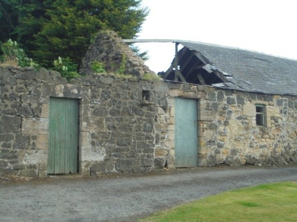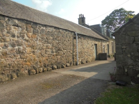 This range of rooms has been heightened at a subsequent date using faced whinstone blocks. Separate and to the east was a barn. It was set back a little and ran perpendicular to the main range. It was probably from here that the dated whinstone of 1720 derives, but was subsequently placed in the rebuilt east wing.