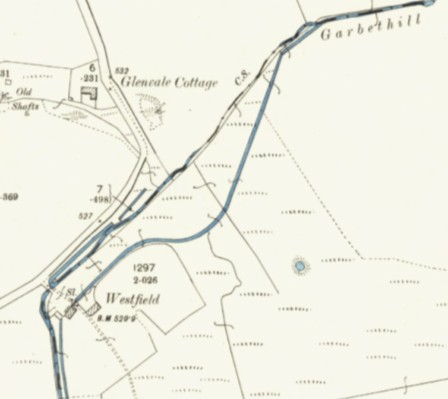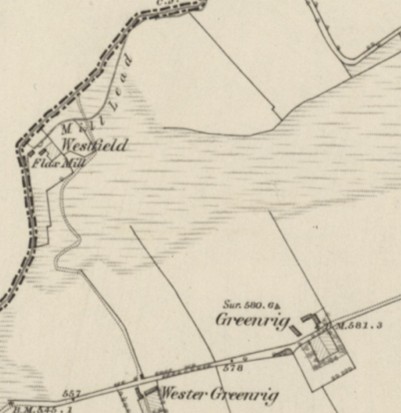 Lint or flax mills are mentioned at Wester Greenrig and Westfield on the extreme western boundary of the Slamannan Parish and it is assumed that these were one and the same. The only reference to the mill at Wester Greenrig is in 1776 when it was said “the Lintmill is a pretty good building but has not been occupied for some years“. The water mill would have been on the south side of the Garbethill Burn. A building at this location is marked as “ruin” on the 1806 parish plan.
