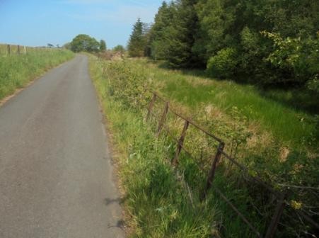 This pond stretches north-eastward from the access road to the mill. This road crossed the stream by a narrow bridge and its stones can still be seen in the bed of the burn at this point. The pond ran alongside and well below the main road and so from the access road northwards there was an iron fence, starting with a gatepost.