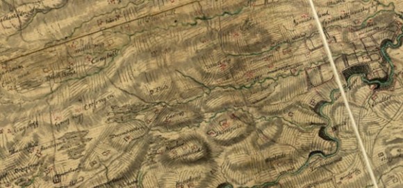 Roy’s map of 1755 schematically depicts areas of arable cultivation as a series of closely-spaced parallel lines representing rig and furrow. It provides a snapshot of the extent of the intensively worked land which had reached its zenith around this time. Down on the lower ground around Falkirk, Airth and Bo’ness, this patchwork is made up of relatively small tightly interwoven fields, but on the higher ground of the braes they are larger and less confined.