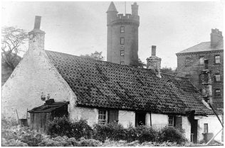 Ahead of us beyond the roundabout we can see the first of a group of buildings which survive near the Ness where the harbour was built in the 17th century. This is the five storey Granary building dating from the early 19th century. It was converted into flats some years ago. Following the road round on the seaward side we cross the remains of the elevated waggon way constructed in 1772 by Dr Roebuck of Carron fame to carry coal from the higher ground to the south of the town down Church Wynd and along the shore to the west pier. From here we can see the so called ‘Tobacco’ warehouse dating from 1772. This four-storey building with its round oculus windows may indeed have stored colonial tobacco for a few years before the American War of Independence disrupted the supplies. Not far away at the mouth of Scotland’s Close, once the High Street of the town, stands the old west pier tavern now part of the Bo’ness Library. Nearby are the beautifully restored Dymock’s Buildings parts of which date to the 1700s. At the end of Scotland’s Close we reach the heart of the old town with interesting buildings all round like the Bo’ness Journal office (1887) on its tight gusset site and with a fine candle snuffer roof. Across the road is the Anchor Tavern built in 1891. Not far away is the splendid Hippodrome Theatre designed by Matthew Steele in 1911 and due for restoration in the very near future. We move along North Street past where the tall town hall clock tower used to dominate the scene. It was demolished in the 1960s, a fate which had befallen the town hall itself in the late 19th century.